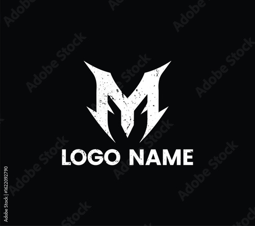 © Mubashar, Obraz premium Grunge Letter M Logo with Sharp Abstract Arrows – Vector Design
