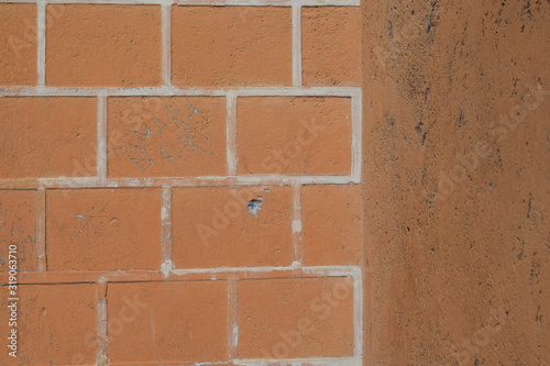 © orsinico, Obraz premium Grunge orange brick wall texture, front view