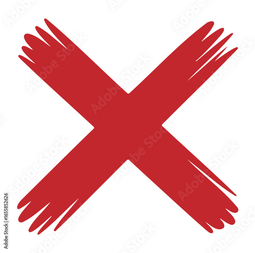 Fototapeta premium Grunge Red X Mark Hand-Drawn Brush Stroke Cross Symbol Vector