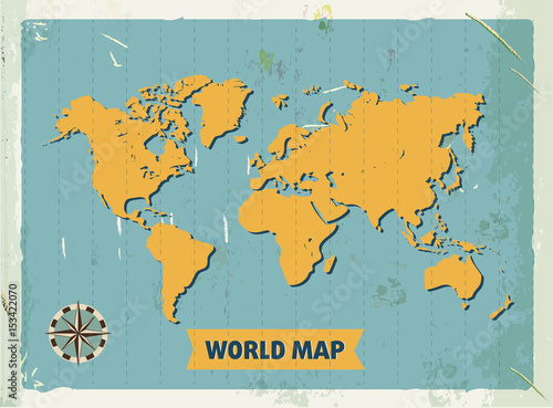 © DiBronzino, Fototapeta premium Grunge retro metal sign with world map. Vintage poster. Old fashioned design.