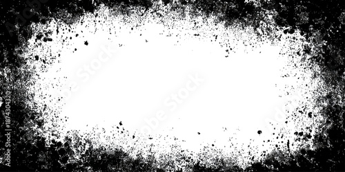 Obraz premium Grunge rough artistic ink border frame and featuring paint splashes texture. vintage black frame and white background design.