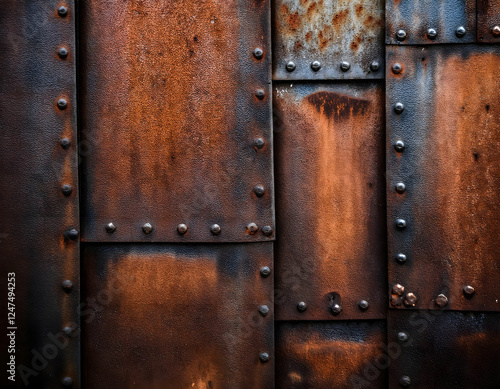 © Laura, Fototapeta premium Grunge rusty orange brown metal corten steel stone background texture. Rusty iron plate texture background