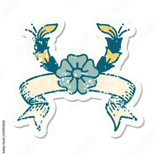 Fototapeta premium grunge sticker with banner of a decorative flower