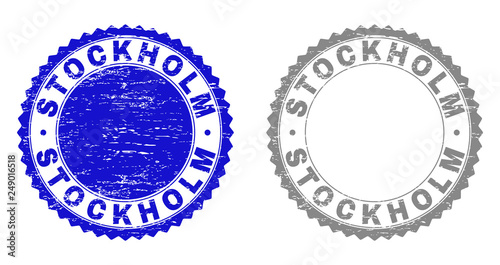 © imagecatalog, Fototapeta premium Grunge STOCKHOLM stamps isolated on a white background. Rosette seals with grunge texture in blue and gray colors. Vector rubber stamp imitation of STOCKHOLM title inside round rosette.