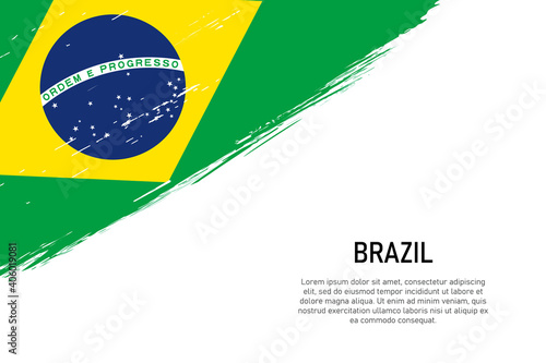 Obraz premium Grunge styled brush stroke background with flag of Brazil