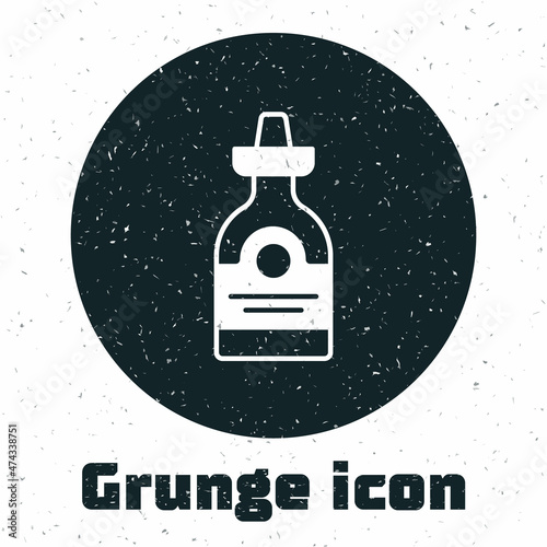 © vector_v, Naklejka premium Grunge Tequila bottle icon isolated on white background. Mexican alcohol drink. Monochrome vintage drawing. Vector