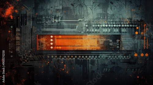 Obraz premium Grunge texture with bright tech overlays