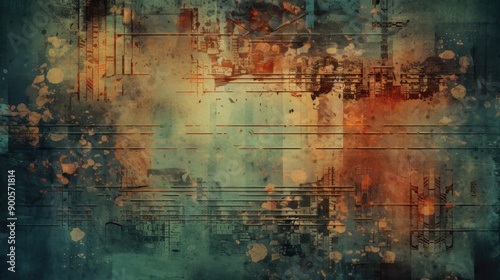 Obraz premium Grunge texture with bright tech overlays