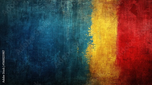 © bulegendut, Obraz premium Grunge textured background in blue, yellow, red.