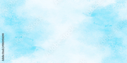 Fototapeta premium Grunge tint light blue watercolor abstract background, Aquarelle paint paper textured, blue sky with clouds, Sky Nature Landscape Background, sky background with white fluffy clouds.