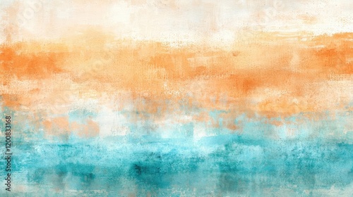 © Thamonchanok, Obraz premium Grunge watercolor concept. Pastel abstract texture blending orange and blue hues for creative design projects.