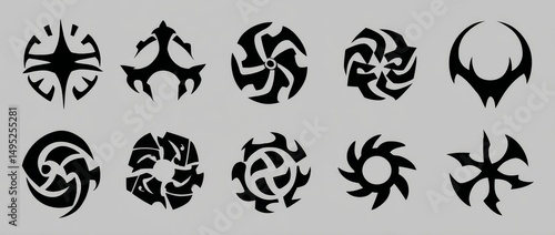 © Bundi, Naklejka premium Grunge Y2k tattoo streetwear graphic elements are featured in this collection, which also includes gothic neo tribal cyber sigilism shapes and modern design