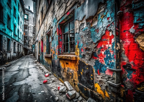 © Danicha, Fototapeta premium Grungy Urban Exploration Texture: Black and White Scratched Background