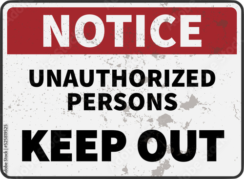 Fototapeta premium grungy warning sign with text NOTICE UNAUTHORIZED PERSONS KEEP OUT, vector...