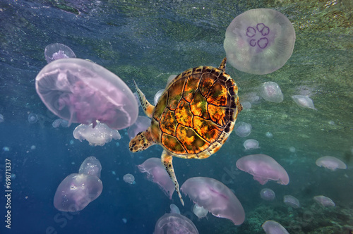 © vlad61_61, Naklejka premium Grupa jasnoniebieskich meduz
