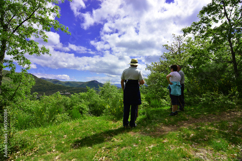 © uzkiland, Naklejka premium grupo de caminantes disfrutando del paisaje de montaña