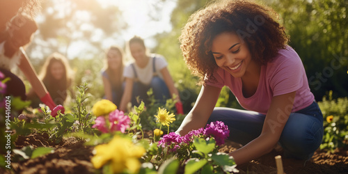 Fototapeta premium Gruppe junger Meschen arbeiten gemeinschaftlich im Garten