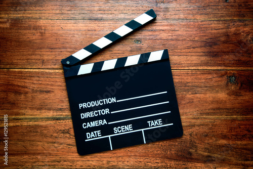 © Hyper Bee, Obraz premium Grzechotka filmu na tle drewna