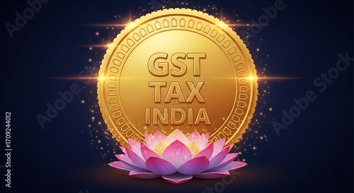 Fototapeta premium GST Tax with Gold Coin: An Illustration of Indian Financial Concepts and Economic Growth