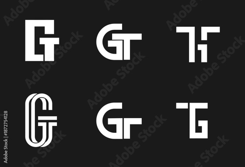 Obraz premium GT Monogram Logo Collection, Modern Geometric Letter G and T Combination Mark Designs