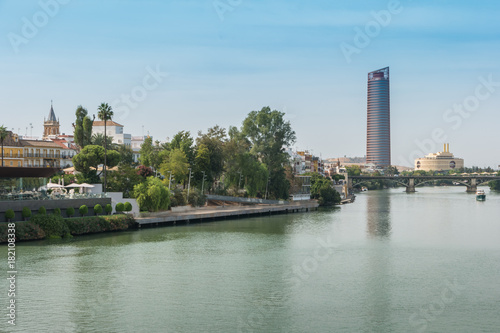 Naklejka premium Guadalquivir river Seville Tower Triana bridge Seville Spain