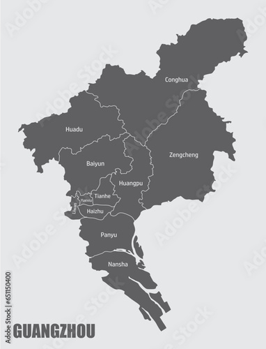 Naklejka premium Guangzhou city administrative map