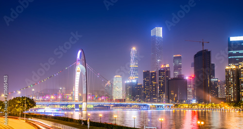 © zhouyilu, Fototapeta premium Guangzhou city night i architektoniczna panorama krajobrazu
