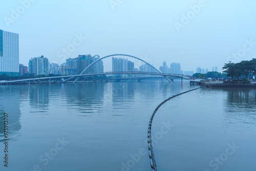 Naklejka premium Guangzhou Pearl River Haixin Bridge and Urban Architectural Landscape