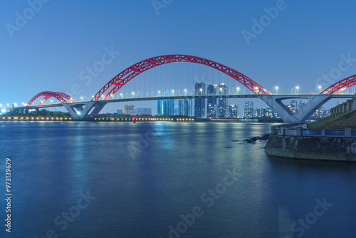 Obraz premium Guangzhou Pearl River Red Bridge and City Nightscape Lighting