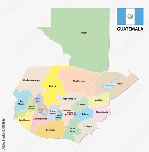 Fototapeta premium guatemala administrative and political vector map with flag