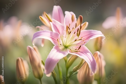 © Toseef, Fototapeta premium Guernsey lily flower bokeh background, AI Generated