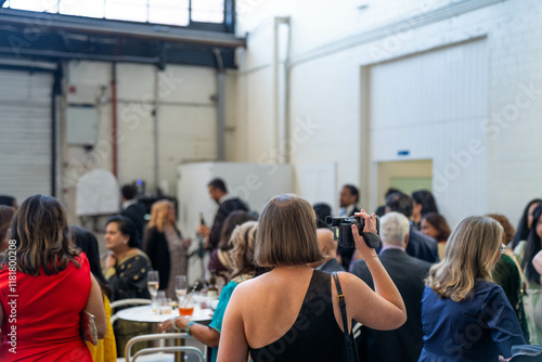 © Phoebe, Obraz premium guests watching at a wedding a ceremony celebrating with the husband and bride