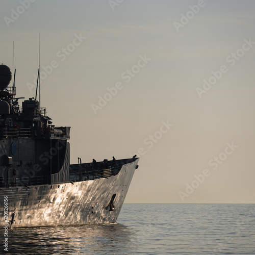 Fototapeta premium GUIDED MISSILE FRIGATE - A Polish Navy warship is sailing the sea
