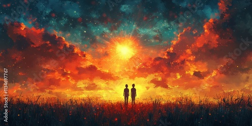 © zong, Fototapeta premium Guiding Star of Bethlehem in a Serene Watercolor Landscape Illustration