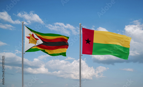 Naklejka premium Guinea-Bissau and Zimbabwe flags, country relationship concept