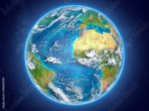 Fototapeta premium Guinea-Bissau on planet Earth in space
