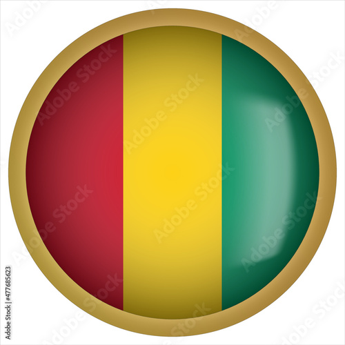 Fototapeta premium Guinea 3D rounded Flag Button Icon with Gold Frame