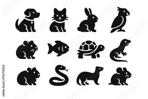 Fototapeta premium Guinea icon fish turtle parrot hamster rabbit ferret vector pet smart cat