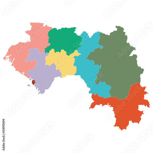Fototapeta premium Guinea map subregions in multicolor