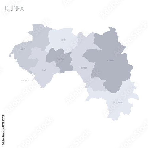Fototapeta premium Guinea political map of administrative divisions - regions. Grey vector map with labels.