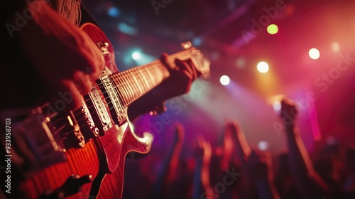© Andrii , Fototapeta premium Guitar Close-Up in a Thrilling Concert