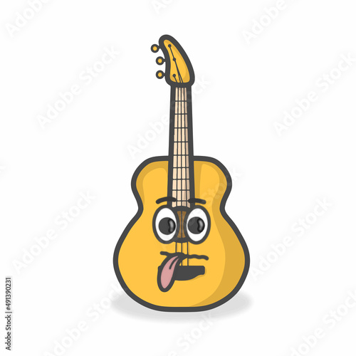 Fototapeta premium Guitar Cute Character Flat Cartoon Vector Design Illustration