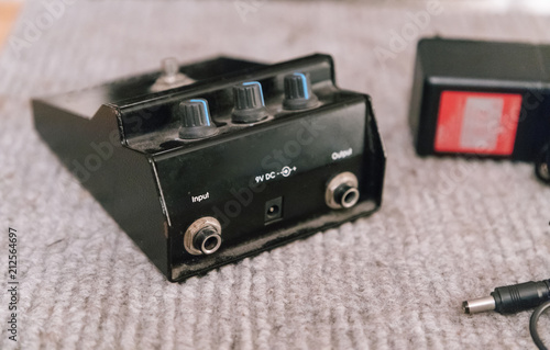 © Dan Rosenthal, Fototapeta premium Guitar effects pedal from behind