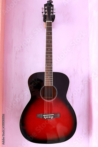 © Arkady Chubykin, Obraz premium Guitar hanging on wall