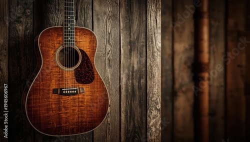 Fototapeta premium Guitar mounted on timber wall