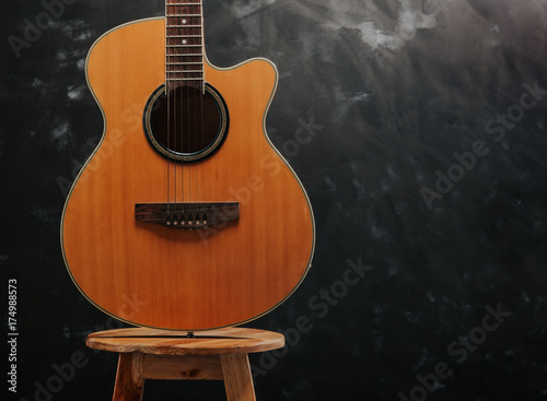Fototapeta premium guitar on chair and black background.