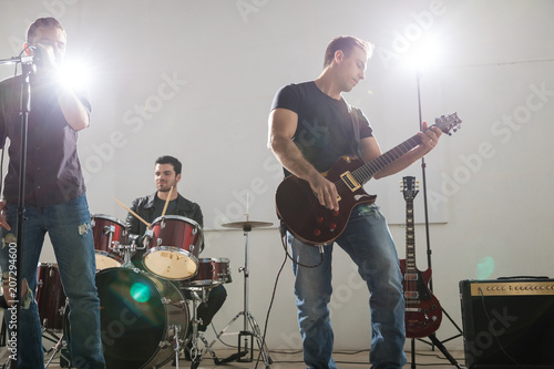 © AntonioDiaz, Fototapeta premium Guitarist grooving music on stage