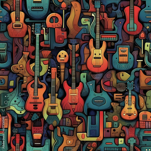 ![Naklejka premium Guitars musical instruments seamless repeat pattern - fantasy colorful cubism, abstract art, trippy psychedelic [Generative AI]](https://as2.ftcdn.net/v2/jpg/06/07/30/69/1000_F_607306943_1EFGWitS0CHviguOFD8DZBZgNV5lU7jK.jpg)