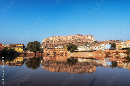 Fototapeta premium gulab sagar talab mehrangarh reflection