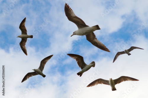© Jacques Durocher, Obraz premium gull birds flight over ocean sky